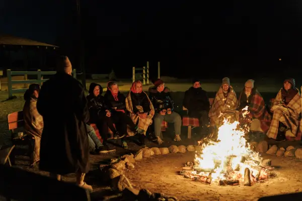 Roundpen — a wooden, open pavilion, perfect for team integration, evening gatherings, and shared dinners