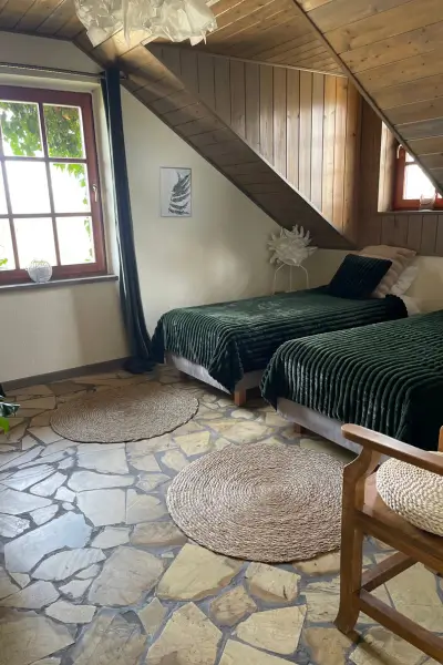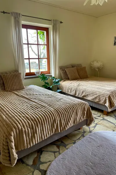 🛏 A comfortable double bed or twin beds — with soft pillows and high-quality bedding that truly supports rest