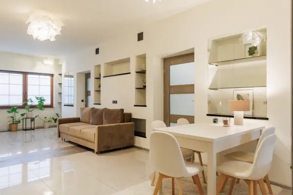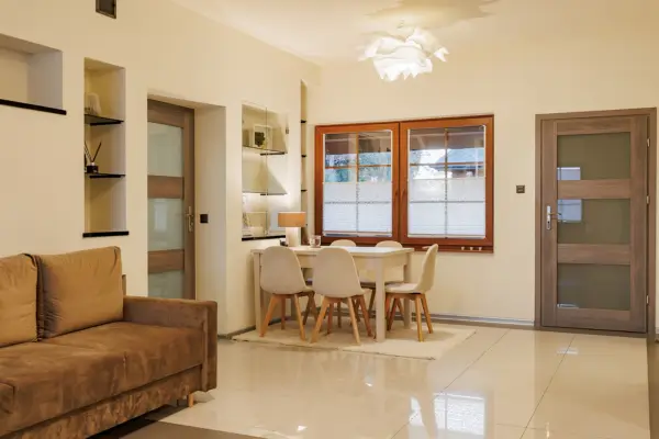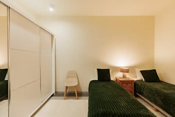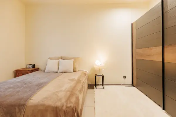 Two-bedroom apartment with a bathroom, kitchen, and living room — accommodates up to 6 guests