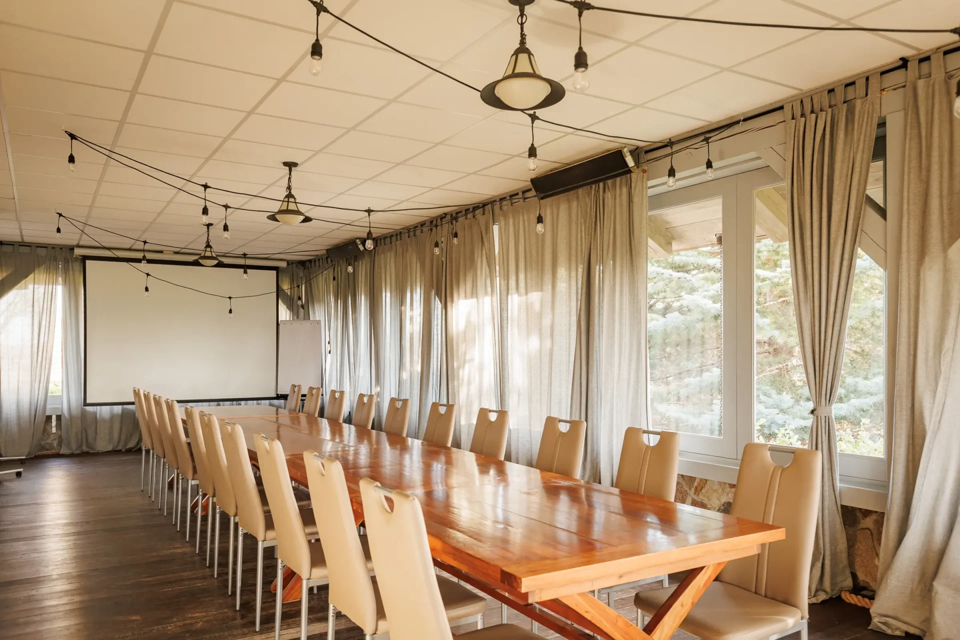 We offer three conference rooms (50–100 m²), accommodating up to 65 participants.